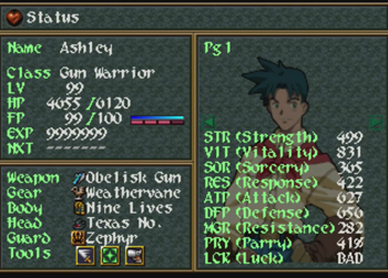 Here are the final stats on Ashley. And, incidentally, I’m going to use it an excuse to talk about Wild Arms 2’s Battle System.