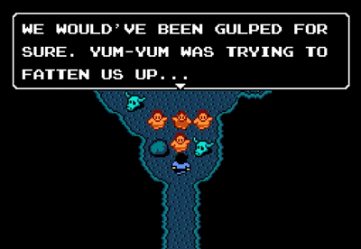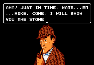 • What’s in a name: Mike collects magical pieces of a necklace that eventually summons a lost king. In the Virtual Console release, they are simply known as “blocks”. However, the original release refers to these four-piece blocks as “tetrads”. Gee, I wonder why they decided to change that?