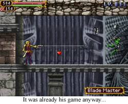 But it’s definitely disappointing that that douche Albus steals the show from Shanoa even as a ghost. Guy was a far more interesting character than the lady who’s just there to follow the orders of the secretly evil cult leader and go through the motions of stopping Dracula, and while I’m glad she didn’t die it still kinda sucks that Albus stole the show again even as a ghost.