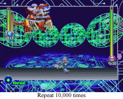 Each and every Maverick “boss” has the potential to impart additional items upon defeat. Depending on the level of the boss, you could receive absolutely nothing, or something amazing, like a weapon powerup coupled with a health increase. But how do boss levels work? Apparently they are tied to defeating other Mavericks and your own hunter’s rank, so the longer you take before tackling a stage, the stronger its boss will become. This all seems well and good until you get to the sad, sad way that levels are implemented with bosses: it only increases their health. It does not change their attack patterns, add extra attacks, nor increase the damage dealt. It simply turns average Mega Man bosses into damage sponges of Yiazmattian proportions.