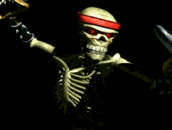 • Imitation is Flattery? Cinder the fire dude is very similar to the eventual Mortal Kombat boss/hidden kharacter Blaze. Spinal the super battling skeleton may as well be Meat of Mortal Kombat 4. And don’t get me started on the similarity between later versions of Reptile and Riptor. Good thing MK never had a werewolf!
