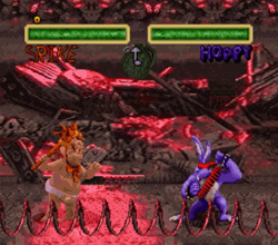 And Clayfighter 2 seems like it was poised to be more of the same. Apparently, the curators of Clayfighter decided to use all new models and all new digitizing for the sequel, so it was a fine excuse to roll out a cast of new fighters mixed with a collection of revamped originals. Bad Mr. Frosty got a new hat, Blob looked slightly different (only so much you can do with a literal blob of goo), and they were joined by newcomers like a laidback banana man, somersaulting octopus, and Kangoo the Kangaroo (possibly the only fighting clay animal in gaming that was invented thanks to a spelling error). And then there was Hoppy the Battle Bunny.