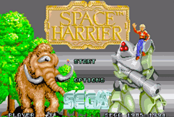 • Did you know? Considering Space Harrier was one of the first 16-bit titles in the arcade, and it used a vaguely analogue-esque “stick” for controls, it would be very appropriate to say Space Harrier was ahead of its time. Considering Space Harrier was released the same year as Commando (not Bionic) and Gauntlet, you can see why Space Harrier’s gorgeous purple skies caught players’ eyes.