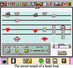 Did put a lot of time into one of its spiritual successors, though. WarioWare D.I.Y. had the fun animation and music tools and stuff (also a separate 4koma mode), but you used them to make tap-based microgames. I’m not the best when it comes to originality, but copying sprites pixel by pixel to have Castlevania 2 Simon throw holy water at the Survival Kids duck in the graveyard to make it drop a silk bag? That I can do!