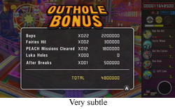 Maybe actually talk about the game for a second: Oh, right, gameplay. It’s a pinball game with a whole two boards. Now each of the boards have about a zillion things to do in each little area and bonus stage… but it’s still just two boards. And there’s a seriously confused camera being employed, so having full control of the board at all times is next to impossible. In short, it’s a pretty mediocre pinball experience on top of everything else.- Could you play this with someone else in the room? Absolutely not. Even if you had this in portable mode, all the vibrating and moaning coming from your system might tip off the local authorities.