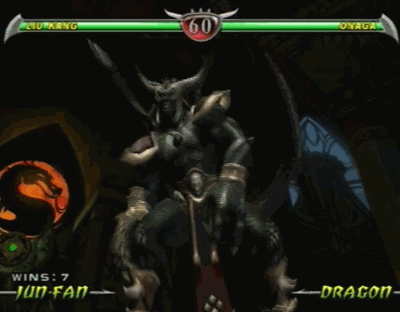 Now, to be clear, all of this kanon was retconned just in time for Mortal Kombat: Deception, but these changes have become “permanent” in the (mostly rebooted) Mortal Kombat universe, so let’s all just accept this story like it’s been there since Mortal Kombat 1. Remember Shao Kahn? The biggest bad of Mortal Kombat that has been a threat to Earthrealm again and again? Well, turns out Shao Kahn is clownshoes. In a time long forgotten, Shao Kahn was merely a minor deity of Outworld, and Onaga ruled the realm. We know it was eventually Shao Kahn that conquered Kitana/Sindel’s home realm of Edenia, but it turns out Onaga was the biggest bruiser in the realms, and many of the universes that were conquered and folded into Outworld were Onaga’s conquests. What’s more, Onaga is a literal dragon, and dragons in the MK universe are literally magic incarnate. As a result, Onaga could regenerate any damaged body parts, and, more importantly, he had the innate ability to revive literally anyone from death. So, Onaga had an army, and that army was literally immortal, because he could just CTRL+Z a bloody battlefield, and all his mans would be alive again. Onaga was an invincible warlord that played on Casual Mode and thus could not be stopped.