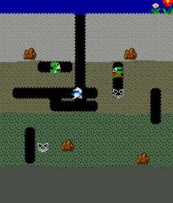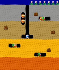 • OopsDid you know? Dig Dug Arranged has a two-player co-op mode, and both players share a score. That’s neat! It’s not competitive in any way! Everybody work together now.