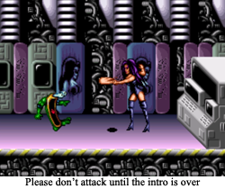 They couldn’t even get the Double Dragon’s main antagonist right. Okay… yes, the people behind Battletoads and Double Dragon: The Ultimate Team did correctly stick Abobo right there in the first level, and he has his proper ‘stache (depending on the port). But the boss of the third stage is “Roper”. Roper is the name of a generic mook in the Double Dragon franchise, and that ain’t him. This character, complete with his signature weapon, is most commonly referred to as “Machine Gun Willy” by the fans. According to the lore, his full name is Willy Mackey, and he’s the main antagonist of Double Dragon and Double Dragon 2 (give or take the wonky “interpretation” of the NES versions). He is the leader of the Black Warriors. He is the one that orders the kidnapping of Marian. He is the final boss of one Double Dragon arcade cabinet, and penultimate boss of another one.