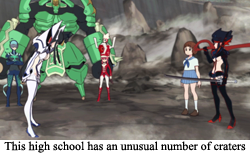 And the whole “high school is Hell” concept isn’t unique to Kill la Kill by any means. In fact, that very phrase was the pitch for Buffy the Vampire Slayer, a television series from two decades ago that combined high school tropes with actual monsters every week. This week: Buffy has to care for an egg as part of that one child-rearing class that only seems to exist in fiction, and maybe the egg is set to hatch an Ancient One in the basement! It’s spooky and relatable! And, whether it was simply because Buffy was popular or writers latched onto the trope almost instinctively, the “high school is Hell” concept has been repeated across practically all media, from books to movies to videogames to whatever the hell Todd and the Book of Pure Evil was supposed to be (Jason Mewes, know that you are appreciated). And, to be clear, the “seriousness” of high school doesn’t just exist in these “hell” versions, either. Whether you’re watching an outright drama or a fluffy situation comedy, the crushing weight of the possibility of being socially embarrassed is often plumbed for pathos. Even something as silly as Sabrina the Teenage Witch (the OG, TGIF version, not the current Netflix iteration that literally involves Hell) frequently derives its 20-minutes of drama from the possibility that the titular Sabrina will be outed as an “other”. The message is clear: high school is deathly serious and vaguely traumatizing. It can and should be compared to eternal torture.