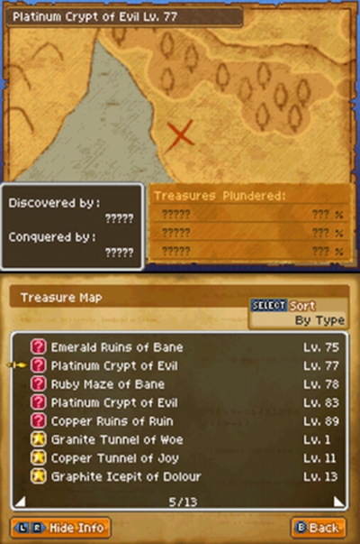 Hey, some of these screen shots are clearly from a new playthrough: Well, yes, I did give it a try for this article. I preserved my precious save file on its cart, and attempted an emulated run of DQ9, but it only proved my hypothesis: you can’t go home again. And maybe you can’t play DQ9 after DQ11, either.- Speaking of Maps: The whole map system leading to unlimited, random dungeons after a game full of carefully created caves is an amazing swerve that obviously accounted for a significant amount of my playtime. That said, I was downright surprised to boot up my old cartridge and find there were a number of maps I never completed.