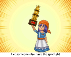 Favorite Class: I had to work the hardest for Luminary, so that’s going to win. Also, in a game that somehow enticed me into caring about JRPG fashion, I’m always going to choose the most fashionable class.- Retro Challenge: There are a number of maps that feature the final bosses from previous Dragon Quest adventures. Considering I don’t think I had finished a single Dragon Quest game before DQ9’s release (does Rocket Slime count?), all of these bosses were new to me, and generally about as “nostalgic” as any other random monster. And that’s cool! It wound up encouraging me to play previous DQ titles, and now I can identify a Dhoulmagus from fifty paces.