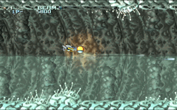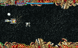 But R-Type does do its level best to set itself apart from the pack. For one thing, much of R-Type’s bestiary is based on the works of H.R. Giger (the genius behind the xenomorphs), which means every other boss looks like a penis. But even if the boss of level 2 causes you to question/confirm your own sexuality, it is at least much more distinctive than your average laser-spewing ship. And speaking of lasers and bosses, R-Type offers another significant change over the Gradius formula: a charge beam. You’ve got your traditional rapid-fire cannon, but you also have the option to stop, smell the roses, and charge up a cannon to a significantly more powerful “charged” attack. This makes R-Type one of the earliest shoot ‘em ups to acknowledge that a turbo button shouldn’t be the be-all and end-all of offensive options. There are times when you’ll want to lay down some suppressing fire, and there are times when you’ll want to launch a charged shot against some alien weiner. You’ve got a choice, and that’s important when you want the game to be something more than a test to see who can break those arcade buttons the fastest.