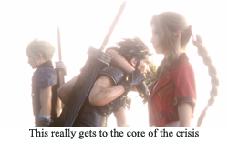 Cloud presents himself as a highly decorated military veteran, joins his childhood friend and a dude with a gun for a hand to take down an evil corporation, and, yada yada yada, man has to punch a wannabe god square in the face to save the planet from an extinction level event. Along the way, Aeris dies, Sephiroth loses his shirt, and someone sits his ass down in a chair and drinks his goddamn tea. Final Fantasy 7 wound up beloved beyond measure, and, likely because Square (+/- Enix) needed to recoup its drinking money after blowing it all on rendering internal spirits, FF7 also spawned an entire theme week’s worth of sequels, prequels, and at least one cell phone commercial that lasted like two hours. As a result, even if you never played Final Fantasy 7, if you’re the kind of nerd that reads an obscure videogame blog, you’ve probably absorbed the generalities of FF7 through sheer cultural osmosis. They might not know their exact names, but everybody can recognize the dog with a fire tail, the dude with the sword as big as he is, and that silly city that kind of looks like a pizza. And, thanks to those previously mentioned sequels/prequels, the world of Final Fantasy 7 has been well and truly fleshed out. You don’t need to imagine what grainy, PSX Midgar is “supposed to” look like, you’ve got UMDs and Blu-rays that contain high definition upscales of anywhere Cloud ever touched. Final Fantasy 7, the seventh complete game in a franchise that has seen a million spin-offs and fifteen “real” entries, has itself been wrung out until every last drop of Mako and Materia could be repurposed for another adventure or five.