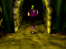 Banjo-Kazooie is every bit the collectathon your parents warned you about (“Stay away from that bad boy, and don’t waste time grabbing everything in a collectathon!”). Every one of the nine worlds in BK contain no less than 100 music notes, 10 jiggies, 5 jinjos (required to obtain one jiggy), 2 honeycombs (health), and any number of silver skulls, eggs, and feathers of all colors. And, like many collectathons, every last bauble and collectible is simultaneously optional and mandatory: you need to nab a certain percentage of everything previously listed, but you don’t need every last item if you stocked up on some in an earlier level. Regardless of required amounts, though, this does mean there is a lot to find in every level, which is always a blessing and a curse. It is fun to find a new jiggy, but it is also a pain when you’ve got nine out of ten and… where did that last one go again? Was I supposed to beat some manner of giant crab, or explore the depths of the ocean? It’s… somewhere around here… Right?