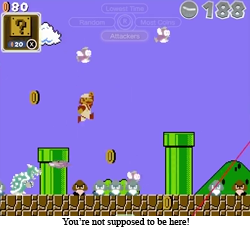 • Favorite Level: I will repeat World 1-2 over and over again given the choice. Literally, in fact, as using the warp pipe there often randomly generates the opportunity to re-roll the stage. It may be because of the easy powerups and starman, or it may be because I like blue goombas. Either one works.