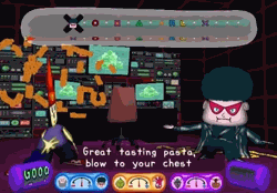 On the surface, this is the same game, just a generation of hardware later. PtR2 is an adventure starring PaRappa where, in an effort to see a dog get deflowered by a flower, you must guide PaRappa through a series of rap battles wherein he gains confidence and the ability to buy a hamburger. All of the raps are new, there are a few more levels on top of the original count, and everything looks and sounds better than it did on the old hardware. There are even escalating, clearly labeled difficulty levels to add a little more replay value to the experience. PaRappa the Rapper 2 did everything PaRappa the Rapper 1 did, but better (give or take your subjective feelings on whether or not a moose driving instructor is better than a moose drill sergeant). But was it easier? Did the directors make more of an effort to help the player through a rap or two? Well, PtR2 did at least give us this guy…
