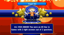 But Smarty Pants? Well, it’s weirdly… uh… how to put this… It feels like… bootleg? Like, the whole thing feels like something that should be a franchise, or was intended to be a franchise… or… something? Like, there’s this little lightbulb dude, and he’s wearing jeans, and you can’t tell me he wasn’t designed by committee. Similarly, the whole game here is just… a quiz show? I would completely believe you if you popped into the comments and claimed this was all based on some obscure USA cable jaunt that ran for seven episodes before the host was disgraced by being busted for possession of excess aardvark semen. But, aside from a few weird events that involve jiggling around with a Wiimote, this is just a straight up quiz show format, with “20,000 questions” (box quote) and a “buzz in” motion required for every answer. It is vaguely… perplexing for someone who knows videogames and game shows to play such a game, as the whole experience could be likened to drinking popular soda brand Dr. Bob: you know you like the name, but something seems off about the whole experience.