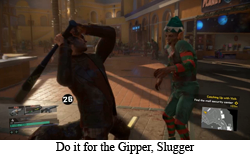 How about those expansions: Mini Golf and Multiplayer appear to be strictly… uh… multiplayer, so I’m not hitting those anytime soon. Frank Rising is the obvious continuation of the story and a pretty interesting concept (Frank is a zombie!), but it quickly just becomes a fairly rote rehash of recurring Dead Rising stories/gameplay (Frank is a zombie… but that just means he has a different standard moveset and can’t ever pick up a bat for some reason). Capcom Heroes, a mode where you can randomly utilize the moves of other Capcom “heroes”, seems like it would be right up my alley, but considering it’s tied to a complete play through of the entire game again… it’s really not a substitute for the real thing. Also, giving Ryu a chi grenade seems wrong somehow.- Favorite Combo Weapon: I am not immune to the siren’s call of “get as much junk as possible”. I am but a man! And I am a man that loves hacking down the zombie gangs with Sub-Zero’s signature ice sword. I naturally gravitate toward melee weapons in these games (because I can’t aim for a damn), and freezing everything in sight is a nice bonus for studying the blade.