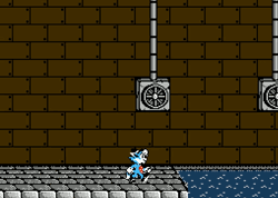 And, likely as result of being a “late” Nintendo Entertainment System title, Rockin’ Kats is oozing personality. The entire adventure is presented as a series of television “episodes”, so there’s the distinct feeling that this whole story is less a “videogame”, and more of a syndicated cartoon akin to Tom & Jerry. Dog kidnaps cat, other cat fights dog, the day is saved, repeat in half hour intervals at 7 AM every weekday morning. What’s more, every sprite is impressive, so the individual mooks are distinctive, every mini boss is a unique challenge, and the bosses are memorable for more than their patterns. And Willy! That dude is just having a ball scampering through cities, mountains, and sewers! He bounds and punches and flips through the air with ease. I mean, take a look at this hep cat…