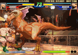 • What does dinosaur blood taste like?Favorite Character: This is one of the weird situations wherein my first pick is the biggest bear wrestler of them all, Zangief. Probably to balance out with the prehistoric heavyweights, Zangief actually has a little agility in this title, and a grappler with some speed is something to be feared. Or maybe they just wanted him to be able to compete with Alex? Who is pretty much the same, but without that all-important chest hair situation? I really can’t say.