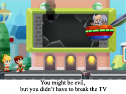 He is not Slick: Oil Man is the other new Robot Master, and he is… a tar baby. Like, straight up, that is exactly what they were going for with the lips and coloration. And that makes sense! Tar, oil, it’s all connected! That said, just because something makes a kind of rational sense doesn’t mean it isn’t hurtful and racist, so someone down the lane should have noted that this was a terrible idea. And the fact that he has a… let’s say “colloquial” accent that involves other Robot Masters calling him a “thug” absolutely does not mean the localization helped. Love that oil slide move! Everything else deserves a rewrite.- Goggle Bob Fact: If you were wondering why I have such an exact memory of the state of internet connections at Mega Man Powered Up’s release, it’s because I had to “overwrite” my MMPU save with Gamefaqs-provided data in order to “download” Roll. What was I supposed to do? Purchase a wireless router? I was a poor college student, dammit, and the campus wi-fi isn’t quite there yet!