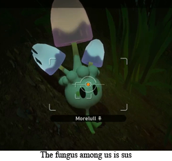 And, while Morelull may not be a cosmic horror, it is a generalized horror. Morelull initially appears to be cute with its big (voidy) eyes, but it hides a terrible secret. Morelull subsists on living energy. Morelull’s whole plan is to put a creature to sleep, and then use the move Strength Sap to drain their lifeforce. So they are basically little mushroom vampires.