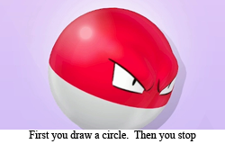 And here is the other side of the spectrum. Silicobra could have been a contender if it did not have years of not-puke-based snakes already in the Pokémon stable. But Voltorb was right there from the beginning, and the official start of Oak’s numbering system hitting triple digits. And Voltorb is… a circle. It is red on one half, and white on the other. There. That’s it. Thanks for playing.