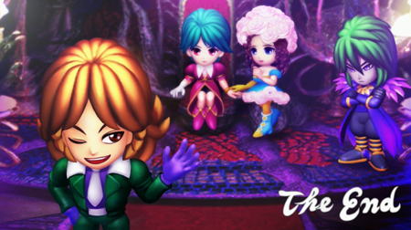 We have not directly addressed Asellus’s “human” ending. If Asellus decides to forsake her Mystic blood entirely (which, incidentally, means Asellus will have the lowest stats possible for defeating an additional optional boss or two), she will earn the “human” finale. In this ending, her eternal friends discuss how she gave up her own immortality for a chance at a mundane life. She did not become a queen, and a series of photographs are shown in reverse chronological order, from a grandma sitting on her couch with two later generations, back to a teenage redhead in front of her home playing with a dog. There is also a snap of Asellus getting married, theoretically explaining the origin of kids and grandkids in other pictures.