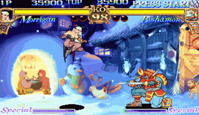 Morrigan is one of the original Darkstalkers, and arguably its most recognizable/popular character. She is, in her way, the “Ryu” of Darkstalkers, and she has a résumé of crossovers to prove it. However, Morrigan is not emblematic of her parent franchise in one important way: she’s not immortal. Many of the Darkstalkers are immortal through the concept of their species (Pyron the fire god, Hannya the armor of hate) or through some manner of undead resurrection (Lord Raptor the zombie, Anakaris the complicated kind of zombie). And, while there are certainly mortal creatures running around (Rikuo the creature from the black lagoon, Sasquatch the… sasquatch), those beasts are generally more… beastly (sorry, Sasquatch messed up by describing skills). Morrigan is firmly entrenched in the whole “Darkstalker royalty” plotline that concerns immortals like Dimitri, Jedah, and others, but she is also distinctly noted as an aging, “mortal” succubus.