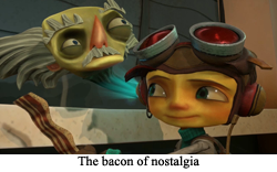 Sexual dimorphism is a scourge: Though it is kind of awful that there are exactly two people that have their brains significantly modified in this story, and they’re both women. And there are, like, a whole two other women relevant to the plot, total. And we are maintaining our “spunky female lead that never actually gets to do anything” status ala Kingdom Hearts. Not a great look, Psychonauts.- Best Dialogue in a Videogame Ever Award: “You know what happens when you die in someone’s mind, right?” “If you die inside a mind…” “You pee your pants!”