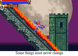 Anyway…I wouldn’t have minded if Castlevania had taken another (non-Mercury Steam) 2D crack at the hit-with-whip protagonist, but Juste Belmont sure did feel limited after all the fun stuff SotN had and some of the more interesting card combos in CotM. I mean, there clearly were some time/budget/cartridge space issues at play.