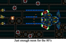 Anything else of note? Yes, the monsters (or whatever) of the piece all seem to lean closer to biological than mechanical. This creates a lovely little Geiger-esque world wherein the final boss being a giant brain in a jar feels positively mundane next to some of the other creatures skulking around.- So, does that intro actually impact anything in the game: Nope! It was created exclusively for the home game, and does not exist in the original arcade version. I guess we all had to know why we were launching every Zig (or why that one big ship was exploding at the top of the first level). But, sorry, ol’ Cats is barely recognizable as the same cyborg during the finale, so don’t expect any closure for that sad space captain facepalming forever.
