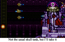 Today’s title is Zero Wing. It was initially an arcade jaunt that migrated to various consoles in disparate regions, and is little more than the flavor of the week of the (then extremely popular) shoot ‘em up genre. It scrolls from left to right (like Gradius), features levels that generally start with comfortable generic areas before ramping up to distinctive, gimmicky challenges (like Gradius), and you have a number of options for upgrades earned by destroying distinct opponents (like Gradius). In this case, your powerups can be a sequential graduation of firepower if you stick to the same color-coded pickups, or you can toggle between power lasers to spread blasts if you change lanes/colors. The most unique thing in Zero Wing gameplay is an extra button for a sort of “tractor beam” that allows you to not only collect abilities, but also grab some of your smaller foes and fling them at larger opponents. This creates a very exceptional situation wherein you are almost happy when a boss brings an entourage to a fight, as it means a whole host of fresh projectiles just wandered into your armory. Defeating a big boss by chucking infinite minions really is the most distinctive, remarkable part of Zero Wing.