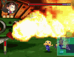 And that’s a damn shame, as once The Misadventures of Tron Bonne gets going, it fires on absolutely every cylinder available. Entire sections are given over to block puzzles, and said puzzles are careful, fun, and thoughtful. Meanwhile, “let’s rob a bank” or “let’s steal all the cows” are exaggerated bits of buffoonery where the action immediately feeds into the exact level of chaos you need when you can chuck whole trees at houses. The weakest segments are the “RPG dungeon” levels, which drag as you wait for your lil’ servbots to stop being squished, flaming casualties long enough to hit a switch or open a treasure chest. But even there, the NPCs of these caves are entertaining and memorable, and, give or take a quiz champ that should be left to die in a forgotten grotto, every “person” in these events could stand to survive to see the Battle Network franchise. Maybe they could control TediousMan.exe? Of course, even those RPG bits remind you that the “action segments” are king here, as every RPG boss is a matter of properly strafing around an arena and targeting servbots at the right weak point. Additionally, the opening and final segments of the whole game are both 100% examples of “action bits”, so, sorry if you really excelled at block shuffling, you need more active abilities to see Ms. Tron save the day.