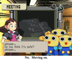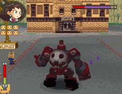 In more ways than one, it is clear that The Misadventures of Tron Bonne was intended to be the experimental offshoot of the already fairly experimental Mega Man Legends. While Mega Man Legends went out of its way to confirm that this was the next generation for our blue hero, his “sister” Roll, and quasi-father Beard Guy, TMoTB barely made the most token of efforts to confirm it existed within the Mega Man universe. 8-Bit Mega Man appears in a random easter egg cameo, and… that’s it. No Dr. Wily boat rental here, and the concept of “Mega Man Legends” is barely even acknowledged on anything but the box copy. Beyond that, this is a story starring Tron Bonne and her family (characters introduced exclusively for Mega Man Legends) before they encountered our third favorite Mega Man. All characters outside the family, whether they be allies, villains, or frenemy police officers, are wholly new and were created exclusively for this adventure. And, give or take visual connection between Glyde and Glide.exe, none of these characters ever received so much as an echo in other Mega Man materials. The Misadventures of Tron Bonne is an island onto itself that was never truly revisited again in a franchise that has lasted to this day.
