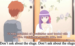 In fact, I am done debating: this is porn. It is just a nontraditional kind of porn where there is a greater emphasis on the mundane daily activities and emotional connections involved. Other than that, all the same blocks are there to build up a castle of visual novel pornography. A straight, male character perfect for audience imprinting that everyone cannot stop complimenting? Three women with very different personalities so you can “choose your waifu”? Even different costumes are available for your harem, albeit “just an apron and a smile” was left on the cutting room floor. It is simultaneously true that this is a game rated E for Everybody for its sheer purity, and it is absolutely wish-fulfillment smut.