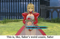 • WeeeeOther Fates: In an effort to see the state of the franchise over the years, I played a few other Fate titles (and sprinkled in a few screenshots). For the record, I played Fate/unlimited codes, which is a great PSP fighting game, and the two Fate/Extella games (Fate/Extella: The Umbral Star and Fate/EXTELLA LINK) that appear on modern consoles. Fate/unlimited is a straightforward fighting game of the PS2 era, and, more importantly, it feels like a fighting game through and through. The two Extella games feel like visual novels where you occasionally have to scoot out and play a Warriors game, and that would be fine if the visual novel was presented with any kind of…. presentation. Look, Xseed, I do not want to read a friggen book before and after gameplay that involves the verb “hammering” quite often.