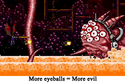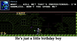 And it is not just about plain English explanations for what stuff does, it is also about how every enemy in Infernax displays “I am being hit” in the same manner. You do not need to waste a half hour on a boss that disguises its weak point with “well, maybe I’m doing damage”. Infernax is a game about exploring an environment and dealing with the traps and tricks of various monsters. It is not a game where you constantly must second guess yourself as to whether or not you’re ever going to throw that knight off his mount. I may never know exactly where I’m supposed to hit Rebonack, but Mahalmon is a clear mark (if this sentence doesn’t make any sense, look at a bestiary some time). Is it not realistic that monsters from Hell have glowing weak points that flash red every three seconds? Maybe. But you know what else isn’t realistic? Monsters from Hell! It is all pretend, so let us at least pretend in a way that is immediately perceptible.