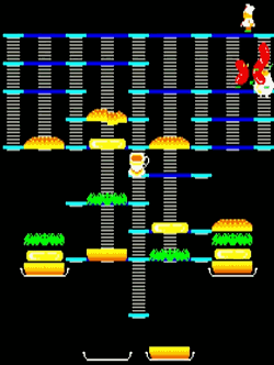 Chefs are not our enemies, they are our heroes. Intrepid Peter Pepper has to assemble a series of giant burgers to prepare for some manner of titan-based lunch rush, but there is a bit of a problem. Some of the ingredients are not going to just lie there and be walked all over, so they have gone on the offensive. Buns, beef, lettuce, and tomatoes are cool with being enormous and docile, but Mr. Pickle, Mr. Egg, and the sandwich-ambiguous Mr. Hot Dog all would rather commit murder than wind up as common components. Peter Pepper only has two options: toss some pepper in their (lack of) eyes for a stunning escape, or carefully manipulate his foes between buns for an added taste of flavor. And if neither of those opportunities are available, well, looks like lunch is going to be late.