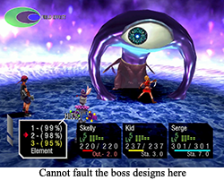 • Chrono Cross is good at using elements for post battle healing. Wild Arms 3 has no such similar process for expending leftover FP. You win this round, Chrono Cross.