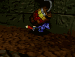 Favorite Level: I used to enjoy “It’s War” for its humor, but, in retrospect, I think that may be because I am an idiot. It is a really annoying level! So I will go with Uga Buga now, as the cave/dinosaur/rock thing going on there is a lot more comfortably platform-y for this platformer.- Did you know? Conker’s Pocket Tales was a legitimate Gameboy Color title that put Conker in a Zelda-like fantasy world that was 100% kid friendly. Damn near no one was buying Gameboy titles that didn’t feature Pokémon at this point, but if they did, hoo boy, that would be some kind of transition between games.