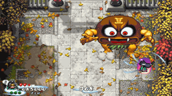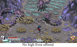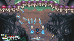 And, to be clear, Pocky & Rocky Reshrined was designed without this function in mind. There are three different powerup options for every character available, and they can be summarized as “spread”, “strong”, and “homing” (more or less). A homing bullet loses an awful lot of functionality when you have more robust aiming options, and the challenge involved in a number of bosses (and even a few of the regular monsters) is based entirely on how you must choose between aiming your leaves in the right direction, or staying safe from a salvo. Hell, there is even the improved melee attack that seems to reflect everything, and that is a defensive option that you don’t see in any other game. Pocky & Rocky Reshrined seems to have been carefully calibrated to not include this feature seen in the likes of Cuphead.