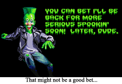 Today’s game is the marginally forgotten Sega Genesis title, Haunting Starring Polterguy. This was an Electronic Arts jaunt from 1993, and won a bit of acclaim at its release for being a very different kind of game. At a time when the consoles were dominated by furry platformers with attitude, Haunting Starring Polterguy was a distinctly humorous game with peculiar gameplay. You are a ghost, and it is your job to scare four different people by possessing a variety of objects that have been conveniently preprogrammed for potential scares. HsP definitely contains some annoying, contemporary “action game” conventions (there is a “Hell” level that is all dodging and jumping, and a completely unsuitable final boss), but, by and large, it is a unique experience that is still rare to this very day. We had… What? Geist? And that was mostly about being a first-person shooter in different forms? Haunting Starring Polterguy is one of the only titles to utilize such a universal concept in decades of gaming history despite the fact that playing as a spooky ghost trying to scare hapless humans is instantly recognizable. We have an entire holiday based on it! Two, if you include the works of Dickens!