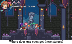 - Maybe actually talk about the game for a second: Once you get past the obvious, there is a glimmer of a game that is worth playing here. Like… it’s not bad? It is, unfortunately, not good, either. It is a pretty by the numbers 2-D action title with one random twist (for once in a 2-D game, blocking with a shield is unusually powerful/useful). Regrettably, the more interesting later abilities are hampered by a limited magic meter, so doing anything more appealing than run/jump/attack consumes a limited resource. Mega Man had this problem in 1987. It should not be an issue in 2022.