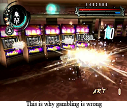 Maybe actually talk about the game for a second: Nobody is here for the metaphysical ramifications of zombie’s a-shootin’, so I should probably talk about the gameplay for a second. Long story short, this game is fun as hell, and I cannot disparage a stylish action game where you can still be effective while playing like a battering ram. And, considering your undead cast, that is appropriate! My only complaint is that they needed an alternative to “stand around to wait for the shield to refill”, because playing conservatively (aka being worried when you have low health) should not have the answer of “stand still” in an action game. It should be “get back out there and shoot as many things as possible”.- What’s in a name? I have to stop myself from calling this “Gungrave: Overdrive” constantly. This is apparently how my broken brain works, though maybe it is just a sign that I should play Sunset Overdose again.