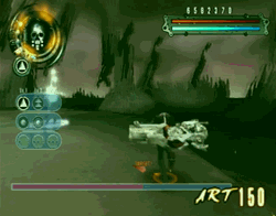 By and large, Gungrave is an action game where the whole of the plot exists as an excuse for Grave to increase his kill count in the most stylish way possible. While this story may be a little more grounded than Devil May Cry’s “Dante must kill every demon in hell (again)” plot, it is still a world where a guitar haunted by a rockabilly is going to be a perfectly cromulent plot point. As a result of this, gameplay where Grave is continually soaking bullets and recovering seconds later is accepted as a mundane event, just the same as Grave slaughtering an entire city’s worth of people while making his way to a malevolent forklift. It is a heightened reality of maximum style, so any “threats” in the story are about on the same level as Bowser menacing Princess Peach. Given this was released a year before Devil May Cry 3 (and when Bayonetta was still but a twinkle in PlatinumGames’ eye), while gaming at large was still focusing on open world “GTA-alike” experiences, GG:OD was/is a refreshing dose of pure action-action with nary an experience system to interrupt the carnage. Infinite bullets, infinitely refilling health (shield), and infinite fun. The “reality” of this world is secondary.
