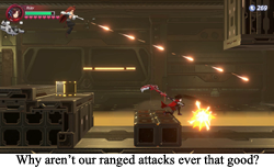 Favorite Character: I always lament choosing “the main character”, but Ruby Rose is the undisputed champion this time. She has a super scythe! And can air dash! As a result, I barely touched Weiss and Blake, with Yang only stepping up to the plate when I needed her rapid-fire punches. I can see how the two “forgotten” members could be useful, but their skills are a little too… stationary for a 2-D game.- Favorite Rival Character: Ruda Tilleroot of Team BRIR wears goggles, her name is Polish for “redhead”, and she has drills for hands. I am not certain who at WayForward said “we should make a character that should appeal to Goggle Bob in every way”, but I appreciate it.