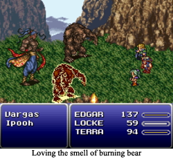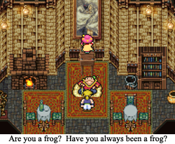 ToastyBut with the last hundred years of hindsight (how long has it been since Final Fantasy 6 was released? Oh… that’s all? Felt like longer), I now feel marginally manipulated by my affection for Edgar and Sabin. A significant part of the reason I like them is that they actually get a story, and have a clear (but fairly quiet) arc where two long-estranged twins learn to accept that they are very different people, but with common values. And, while some of this story could use a little bit of polish (if I could change one silly thing about Final Fantasy 6, it would be that initial appearance, “Young” Sabin would not have the same sprite, and look more like his brother before he leaves to become a bear-man), it is presented well through flashbacks and current events (“Hey, Edgar, let me borrow that trick coin I know you have”) that occur at a measured pace throughout the story. Many 16-bit RPGs followed the pattern of “introduce character – present character’s issue – solve character’s issue at the end game” with nary a word about these topics between the featured plot events. Here, it feels like Edgar and Sabin have a long simmering relationship, and, like how Locke and Celes grow into something more, the twins reach a natural end organically (well, as organically as is possible in a game where you must stop to murder a group of six mice with swords every few steps). But all of that comes through because they are frequently featured. In fact, my adult playthrough (that sounds dirty) caught a big whiff of “this is a writer’s favorite character”.