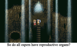 Apropos of nothing, I would also like to state for the record that there is a minecart level in Final Fantasy 6. While I feel the presence of minecarts in videogames have been exaggerated over the years, this could be evidence they were a requirement for the 16-bit era…