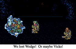 That said, using Mog to choose your scenario during the “split” after fighting Ultros is inspired. It would be incredibly easy to make this momentary portion of the game a list with selectable characters, or some variation on the character select screen with an elementary pointer. But no, in a “room” where you can only take something like twelve steps, you are Mog making the decision on what scenario to follow. You can play with equipment, use the nearby savepoint, or… I don’t know… pretend you are an omnipotent bat boy that controls the fates of Locke, Sabin, and Terra. There is absolutely no reason you must have a playable character for this choice, but the fact that you get to inhabit obvious cool guy Mog for this moment is amazing.